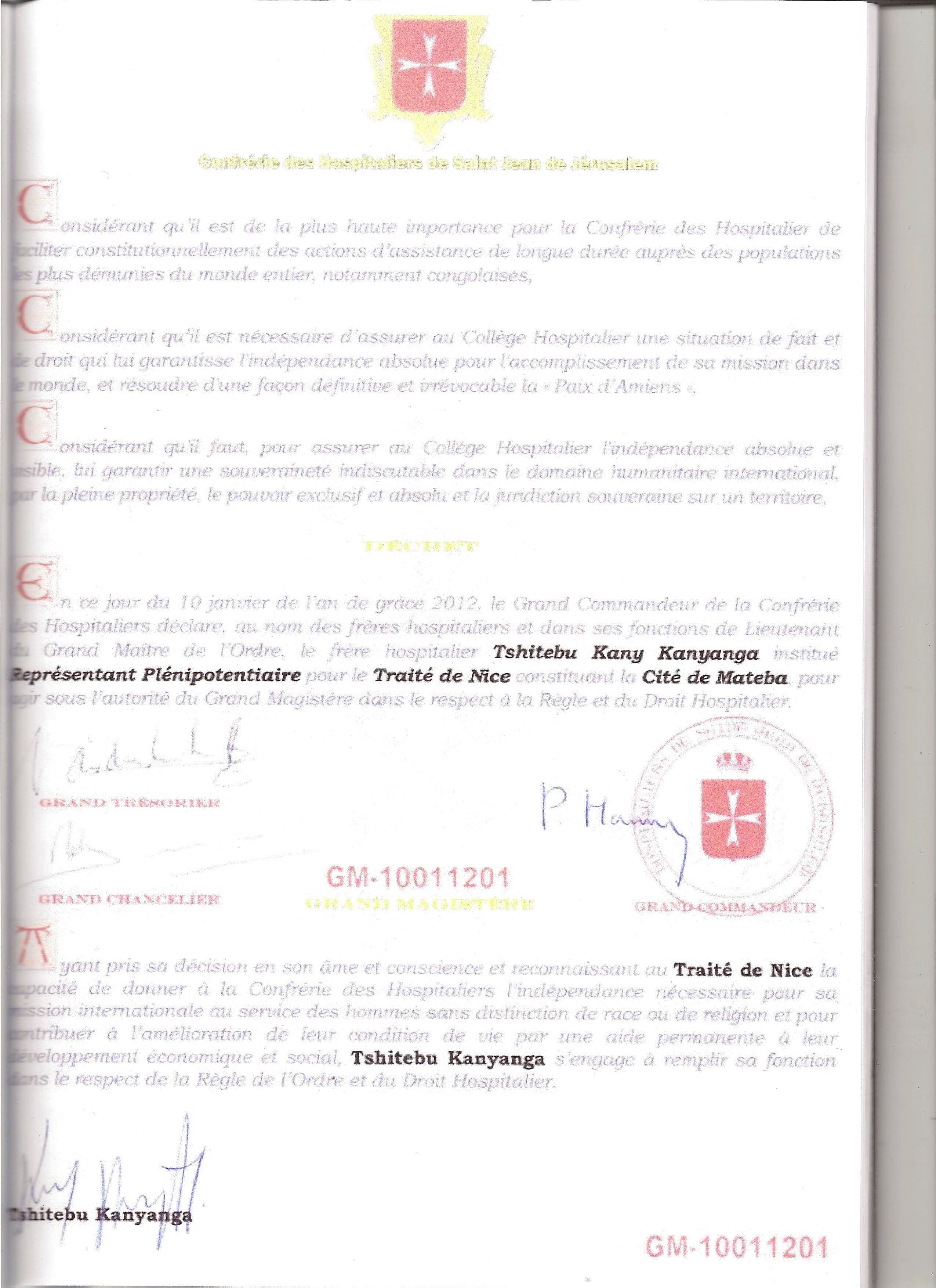 Omer (signatory of the Treaty). In turn, Moella Kalala Omer is Pastor Faustin