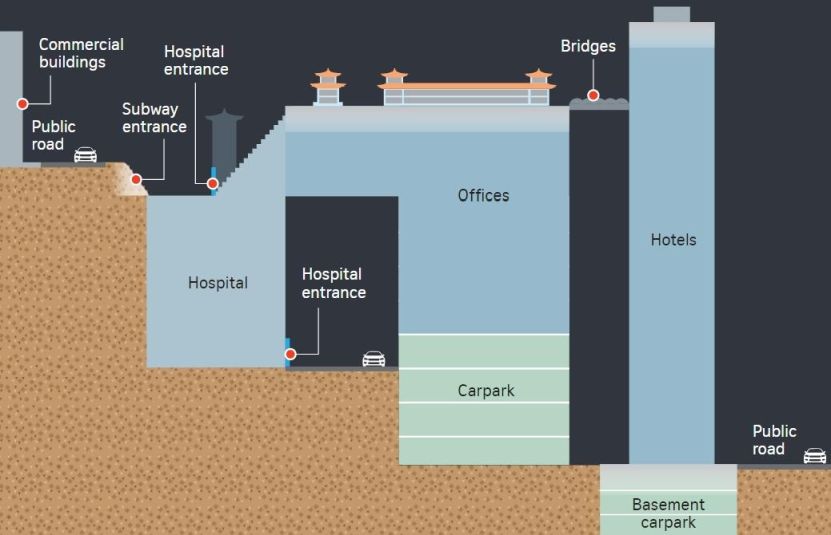 arrive at the medical facility. But two short bridges connect the facility to