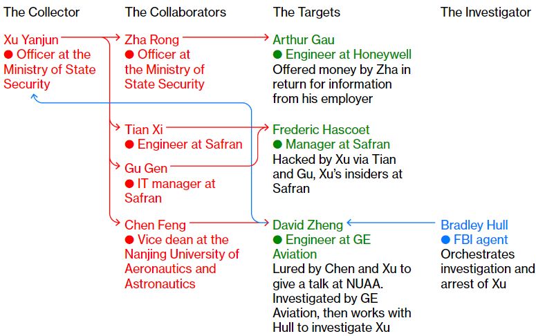 engineers with the secrets China needed, passing on the data to the government,