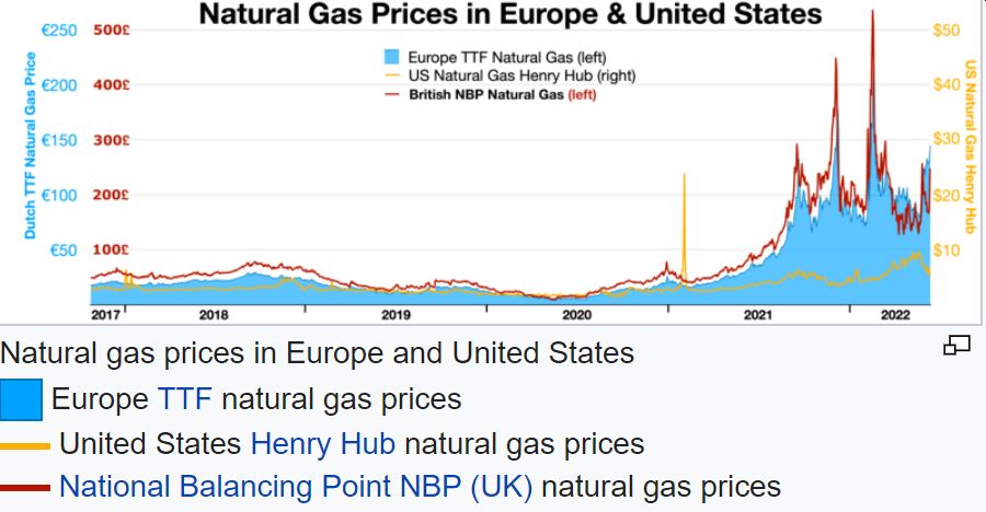 Natural gas is trading at about five times the price of a year ago.