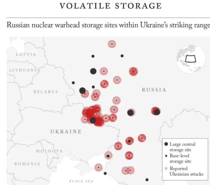 its warheads located within 500 miles of the Ukraine border to storage sites