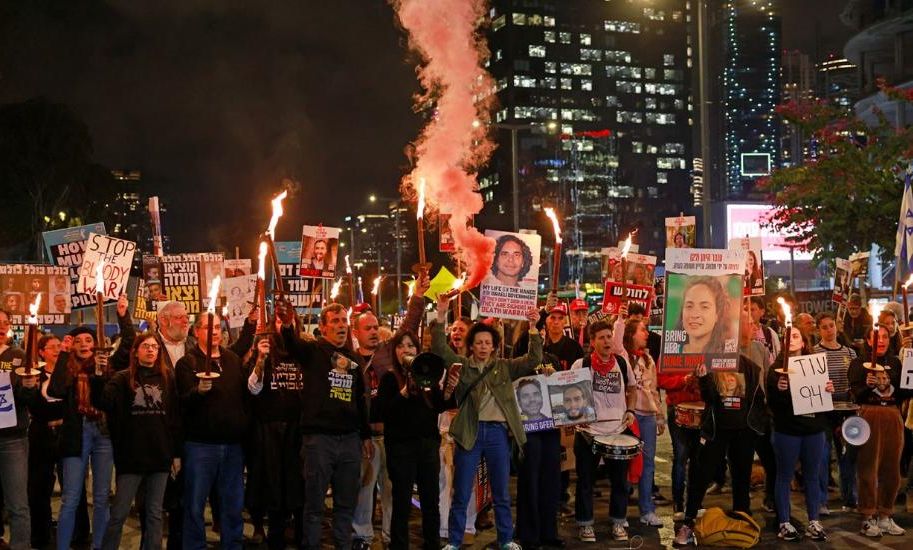 relatives of Israeli hostages held captive in the Gaza Strip, demonstrate