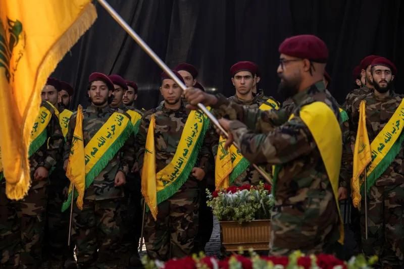 Hezbollah members at the funeral of a Hezbollah