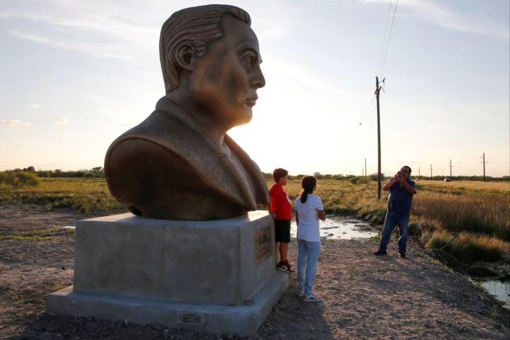 A bust of Elon Musk near SpaceX’s launch pad.