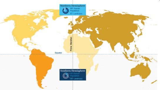 into two hemispheres: Northern and Southern. The Northern Hemisphere is