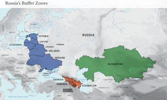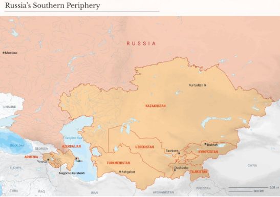 each other. Between these two centers are somewhat isolated entities: Russia,