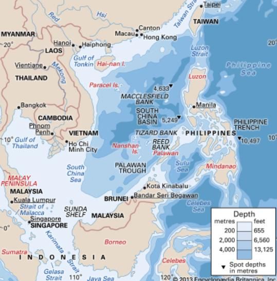 South China Sea as China and the Philippines clash over Sandy Cay Reef. What