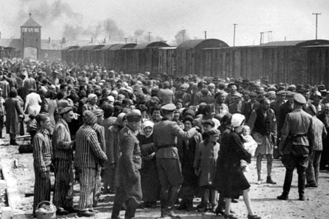 Jews on the selection ramp at Auschwitz, May 1944