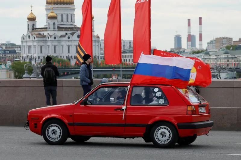 People celebrating Russia’s victory over Nazi