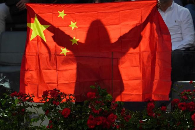 Holding a Chinese flag in Rome, May 2025