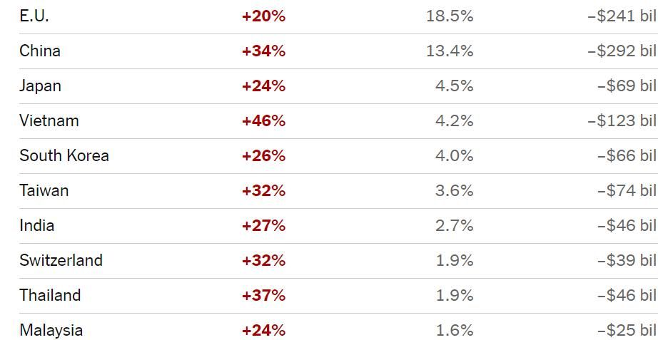 U.S. tariff with its own on all U.S. imports, while other countries around the