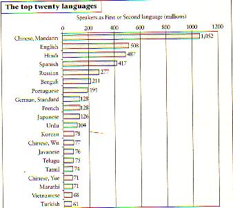 change much, but the spread of languages have, particularly Chinese